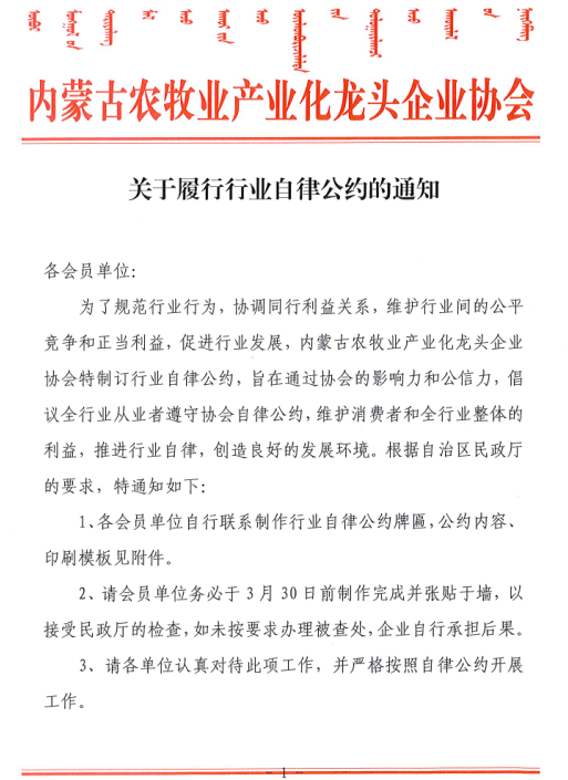 內(nèi)蒙古農(nóng)牧業(yè)產(chǎn)業(yè)化龍頭企業(yè)協(xié)會(huì)行業(yè)自律公約.doc