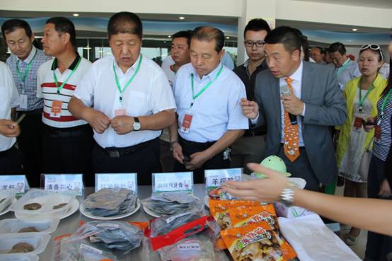 蒙羊牧業(yè)總裁閆樹春向各位來賓介紹蒙羊產品