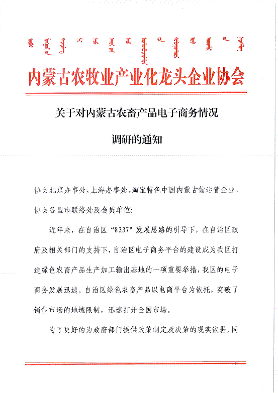 標題:關于對內(nèi)蒙古農(nóng)畜產(chǎn)品電子商務情況調(diào)研的通知
