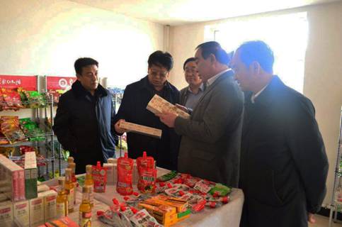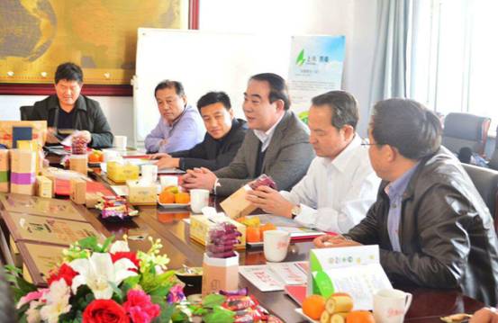 呼市農牧業(yè)局主要負責人的陪同下走訪內蒙古紅太陽食品有限公司