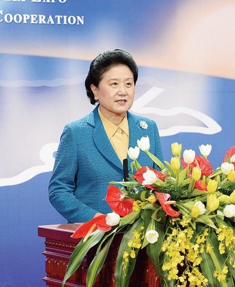 10月23日,首屆中國(guó)—蒙古國(guó)博覽會(huì)在呼和浩特開(kāi)幕。中共中央政治局委員、國(guó)務(wù)院副總理劉延?xùn)|發(fā)表主旨演講。記者 袁永紅 攝