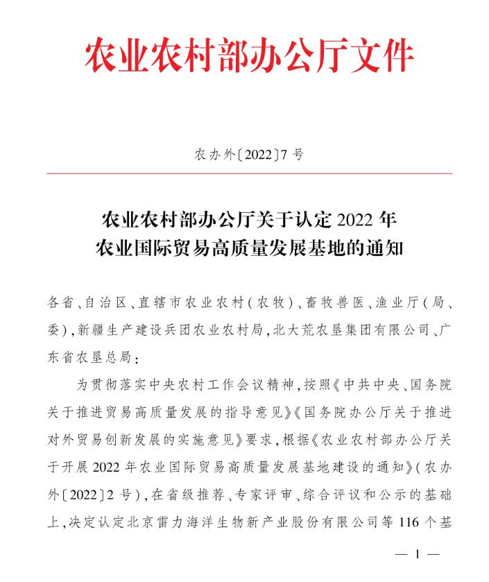 標(biāo)題:祝賀:我區(qū)5家企業(yè)被認(rèn)定為2022年度農(nóng)業(yè)國際貿(mào)易高質(zhì)量發(fā)展基地