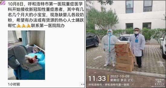 11、副會(huì)長(zhǎng)單位-內(nèi)蒙古伊利實(shí)業(yè)集團(tuán)股份有限公司:伊利集團(tuán)聞風(fēng)而動(dòng),10:36看到求助信息,11:30完成援助,為呼和浩特市第一醫(yī)院重癥醫(yī)學(xué)科嬰兒送去各段奶粉。