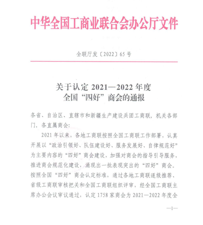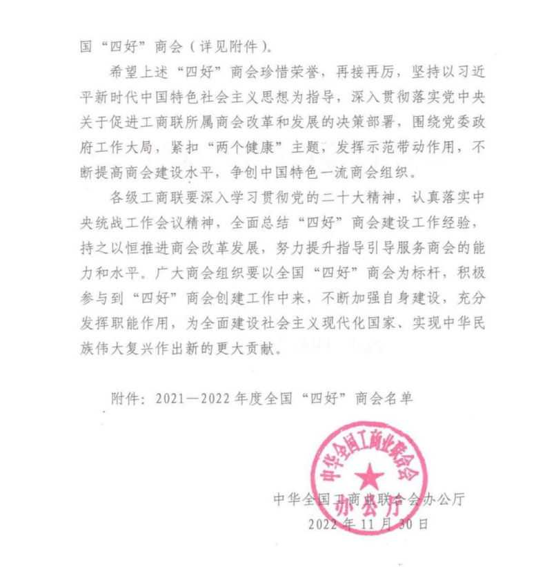 再次榮獲全國“四好”商會榮譽(yù)稱號