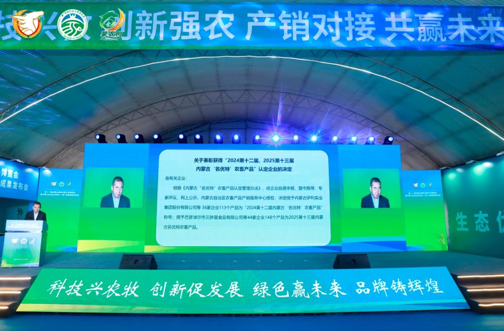 協(xié)會(huì)會(huì)長(zhǎng)徐建忠作精彩發(fā)言,秘書長(zhǎng)呼群宣讀《關(guān)表彰獲得2024年第十二屆、2025年第十三屆內(nèi)蒙古'名優(yōu)特'農(nóng)畜產(chǎn)品”認(rèn)定企業(yè)的決定》并代表協(xié)會(huì)與內(nèi)蒙古教育出國(guó)留學(xué)服務(wù)中心簽訂的框架合作協(xié)議項(xiàng)目。