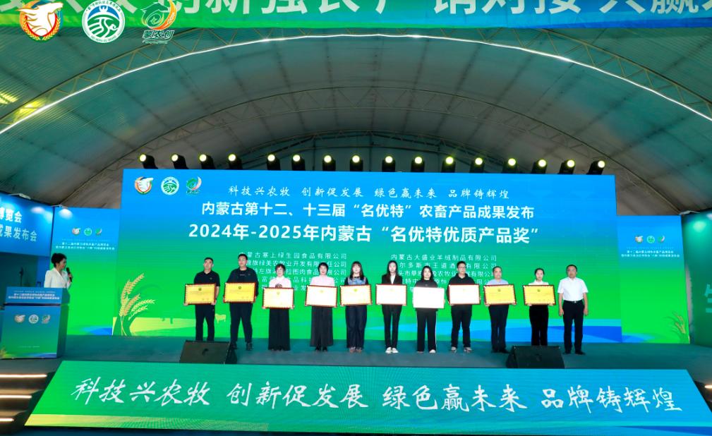 發(fā)布會(huì)上自治區(qū)農(nóng)牧廳二級(jí)巡視員侯雁冰、畜牧局局長(zhǎng)紅海、自治區(qū)人民政府駐上海辦事處黨組書記、主任李志剛、自治區(qū)農(nóng)牧廳鄉(xiāng)村產(chǎn)業(yè)發(fā)展和農(nóng)墾處處長(zhǎng)邢瑞、農(nóng)畜產(chǎn)品質(zhì)量安全中心副主任云巖春、協(xié)會(huì)會(huì)長(zhǎng)徐建忠、內(nèi)蒙古綠色與有機(jī)食品協(xié)會(huì)常務(wù)副會(huì)長(zhǎng)、高級(jí)顧問(wèn)邢黎明為獲得第十二、十三屆名優(yōu)特認(rèn)證的企業(yè)頒發(fā)獎(jiǎng)牌并合影留念。