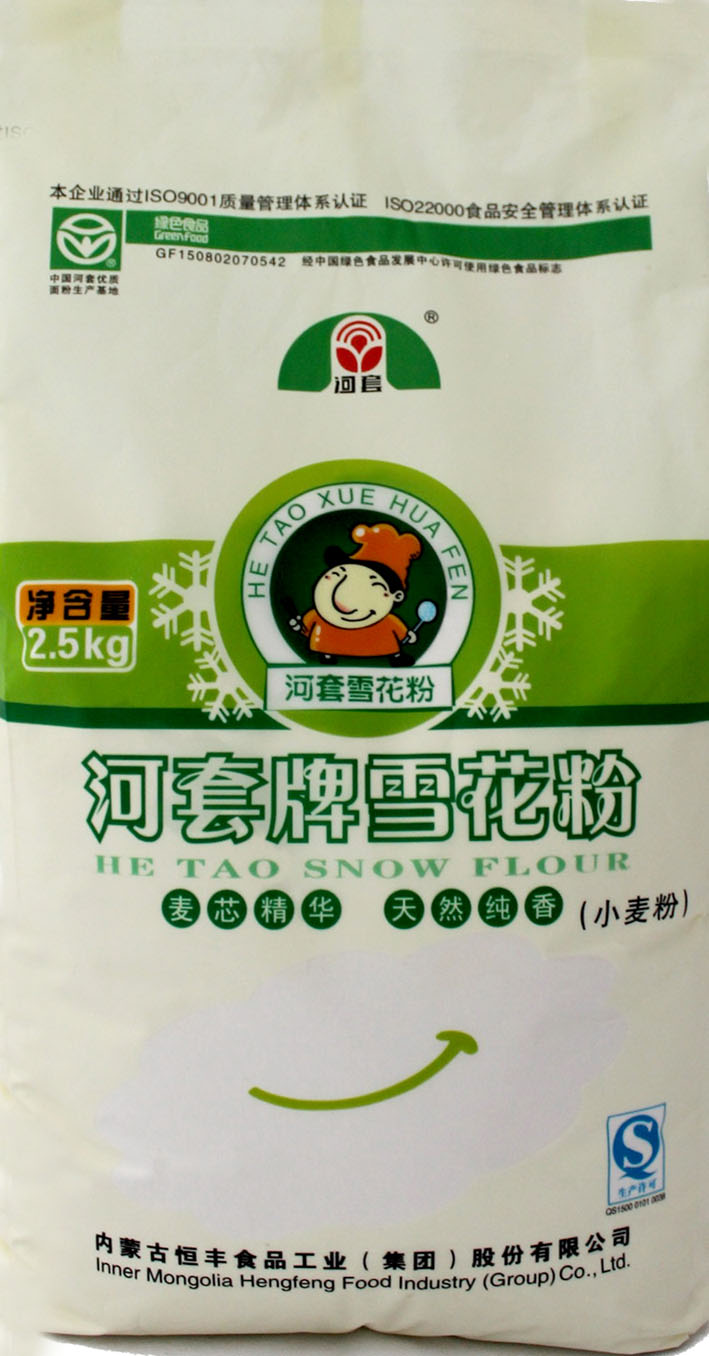 河套雪花粉河套平原優(yōu)質(zhì)小麥的代表產(chǎn)品,是中國優(yōu)質(zhì)面粉的代名詞,出粉率一般在26%~30%,白度可達到79%,適合制作各類蒸煮食品,自然潔白,為您和家人帶來品味、品質(zhì)生活