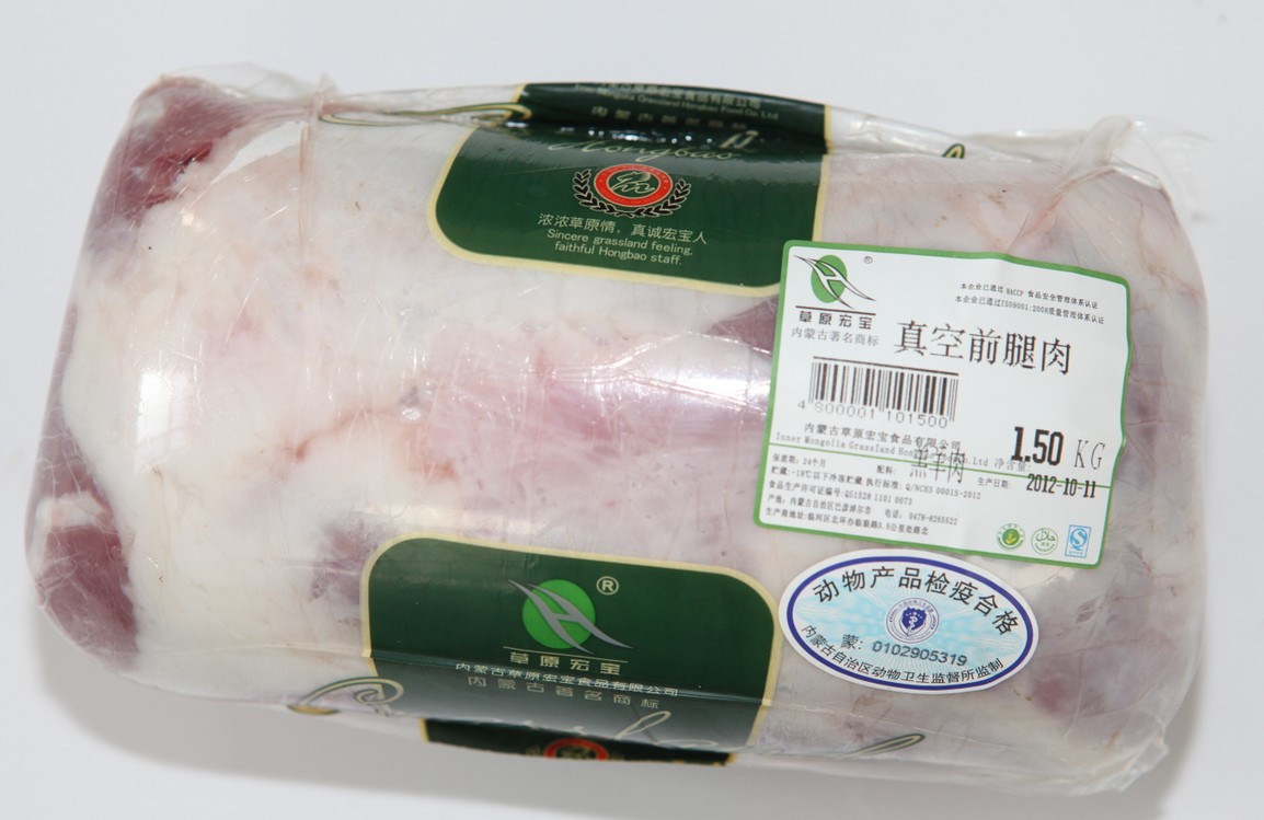“草原宏寶”牌羊肉系列產(chǎn)品,從牧場養(yǎng)殖、屠宰分割到儲運(yùn)物流、商品貿(mào)易全產(chǎn)業(yè)鏈、全過程參照國家《良好農(nóng)業(yè)規(guī)范》及相關(guān)工廠、物流審核標(biāo)準(zhǔn)的要求實施可追溯控制生產(chǎn),確保安全無污染。所生產(chǎn)的原料全部選用牧場的優(yōu)質(zhì)羔羊,采用伊斯蘭教屠宰方式進(jìn)行吊宰,經(jīng)冷卻排酸、精細(xì)分割修選加工而成,被國家農(nóng)業(yè)部農(nóng)產(chǎn)品質(zhì)量安全中心認(rèn)證為“無公害食品”。