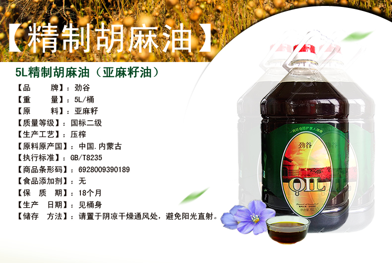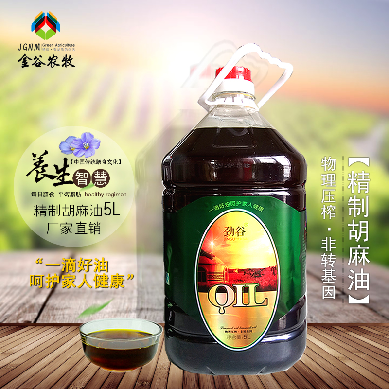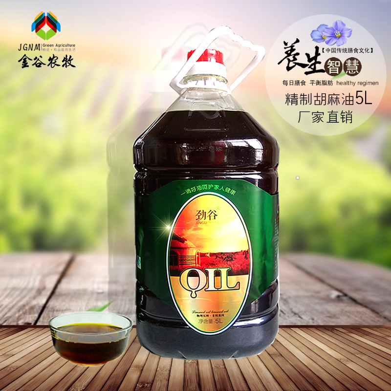 勁谷精制胡麻油5L 內(nèi)蒙古胡麻油 廠家直銷 物理壓榨胡麻油