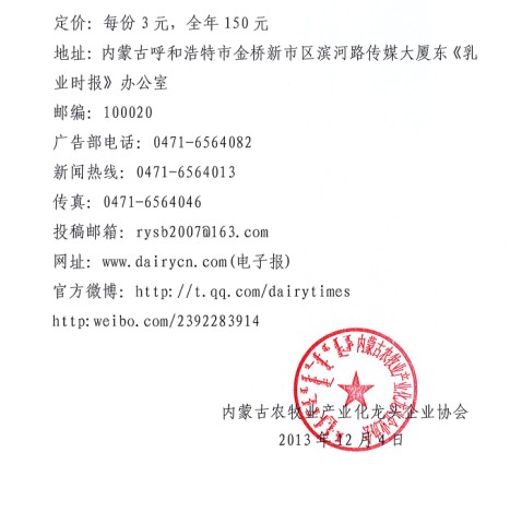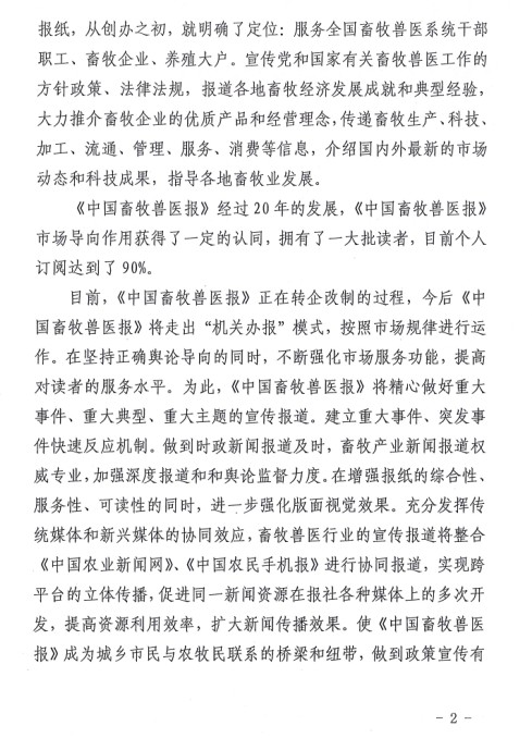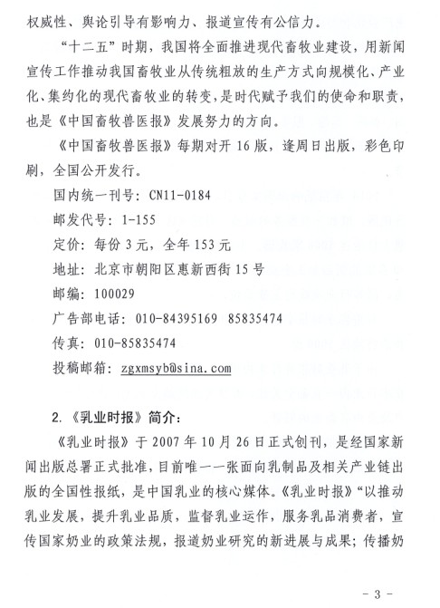 關(guān)于建議會員單位訂購《中國畜牧獸醫(yī)報》、《乳產(chǎn)業(yè)時報》的通知