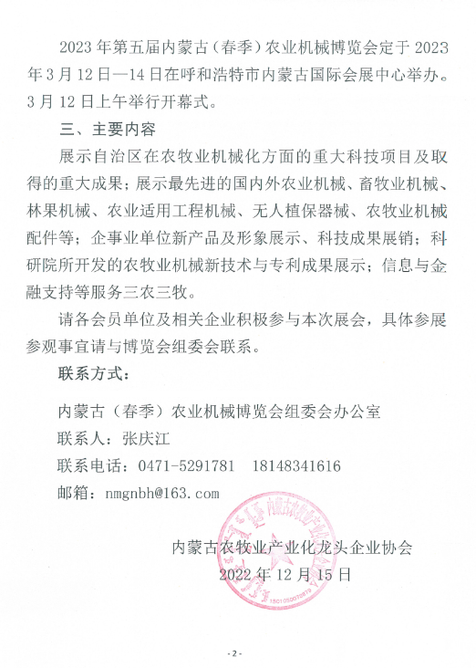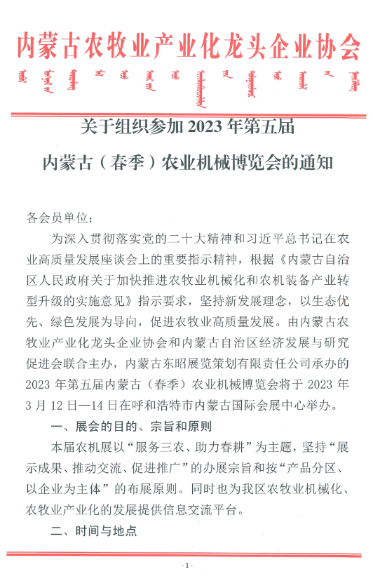 關(guān)于組織參加2023年第五屆內(nèi)蒙古(春季)農(nóng)業(yè)機(jī)械博覽會(huì)的通知