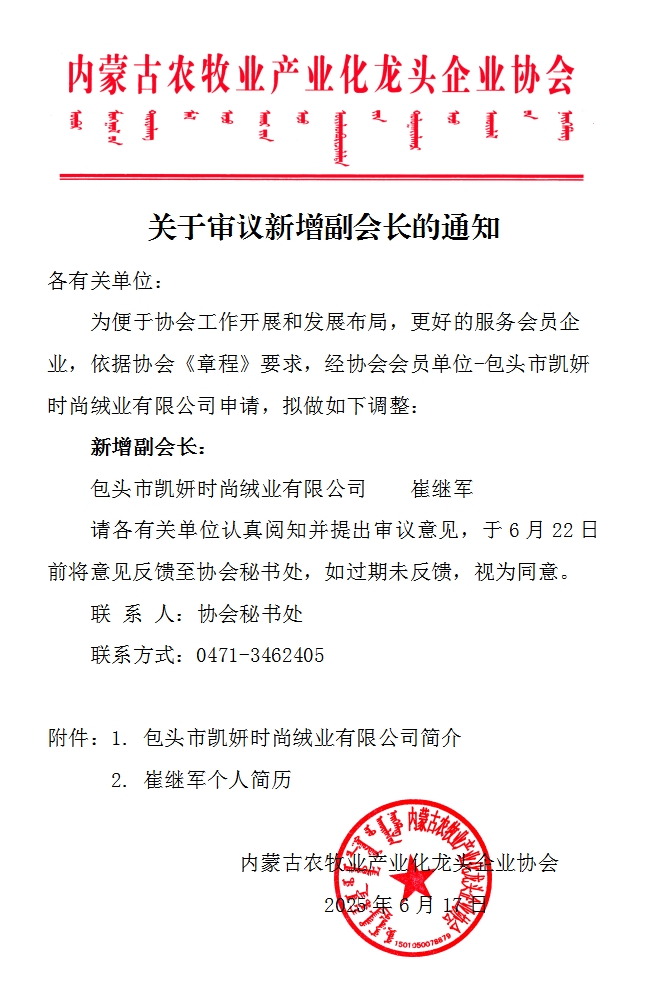 關(guān)于審議新增副會長的通知
