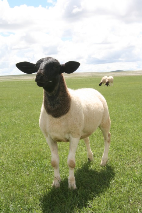 杜泊羊杜泊肉用綿羊原產(chǎn)于南非,是由有角陶賽特羊和波斯黑頭羊雜交育成,主要用于羊肉生產(chǎn),因其適應(yīng)性強(qiáng)、早期生長(zhǎng)發(fā)育快、胴體質(zhì)量好而聞名。被國(guó)際譽(yù)為鉆石級(jí)肉羊。根據(jù)其頭頸的顏色,分為白頭杜泊和黑頭杜泊兩種。
